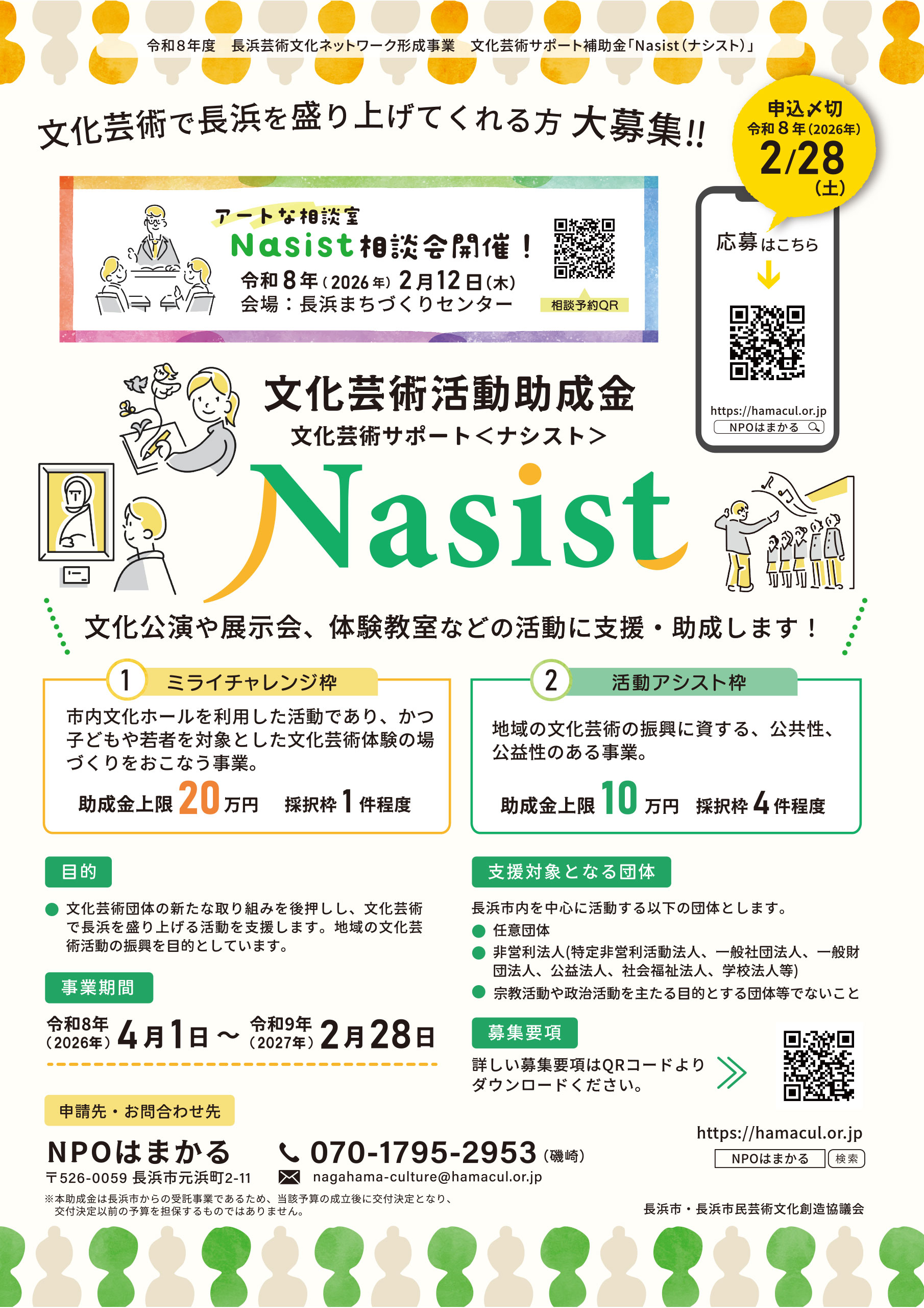 文化芸術サポート『Nasist<ナシスト>』令和8年度事業を募集開始!